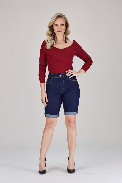 Blusa Manga Longa Confeccionada Em Malha Canelada Com Transpasse Sobreposto Frente