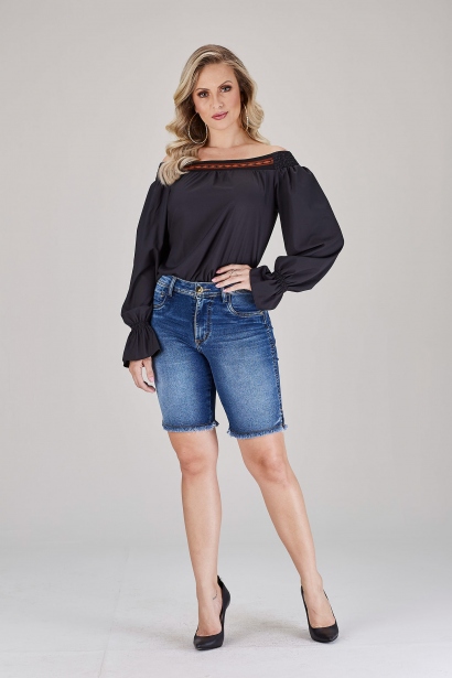 Blusa Modelagem Ciganinha Com Ribana Trabalhada No Decote E Mangas Com Volume