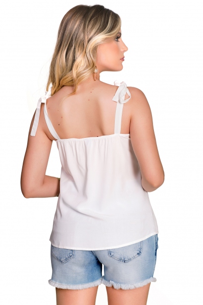 Blusa confeccionada em tecido 100% viscose com modelagem mais justa, pences no busto para melhor ajuste, detalhe de ilhós e alças para amarração sobre ombros