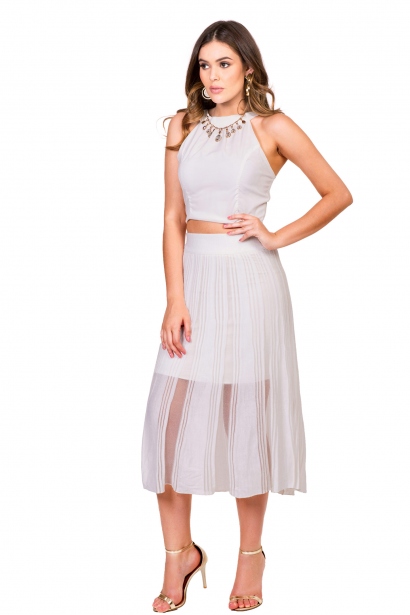 Top comprimento croppep com colar decote. Fechamento zíper costas